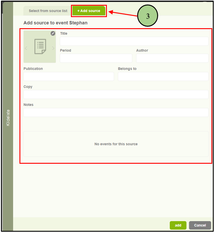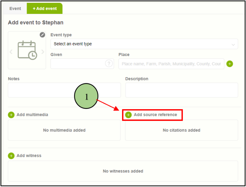 1. Users have the option to add proof or reference for an event utilizing the “sources” feature.