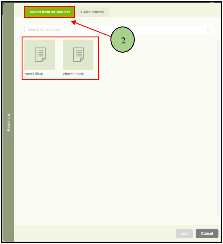 2. Upon clicking on “sources,” a pop-up window will appear with two tabs. The first tab displays the available sources.