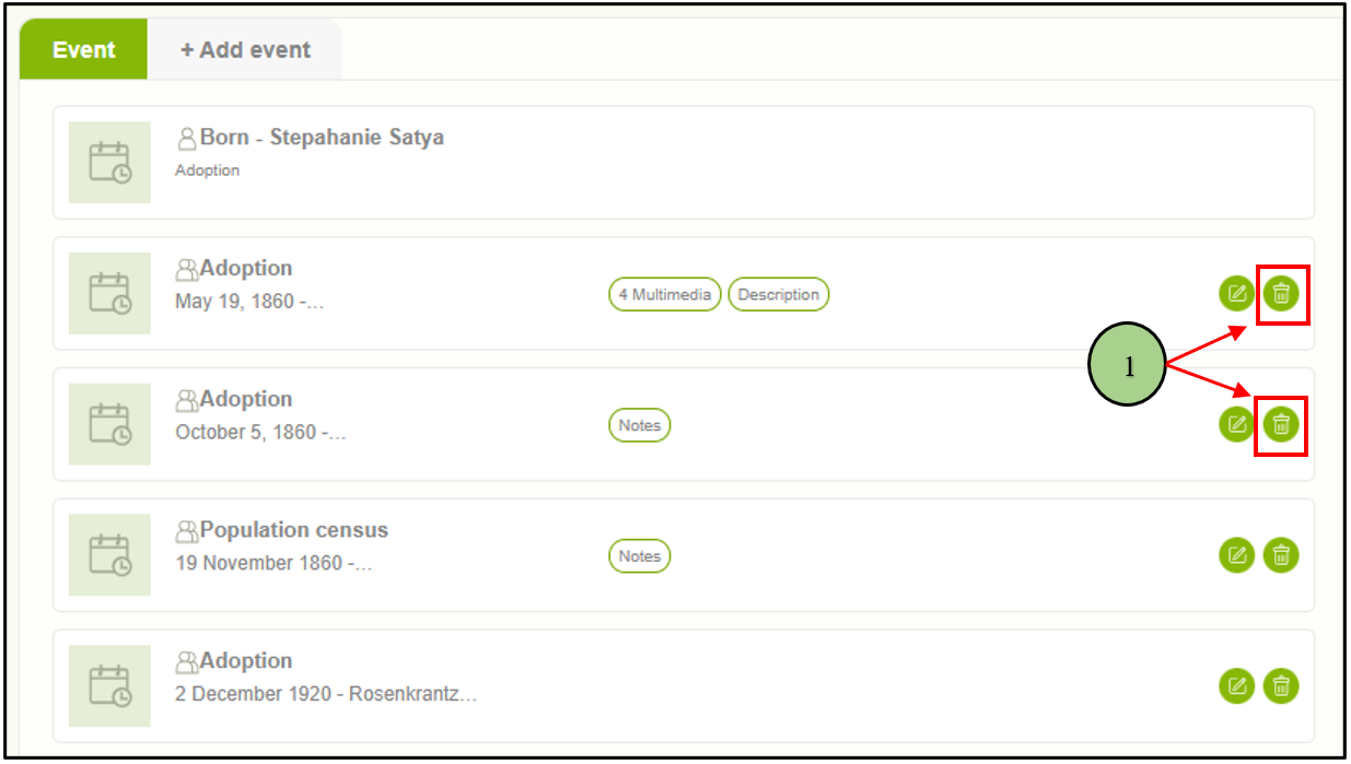 1. Users can delete events by clicking the delete icon associated with each event entry.