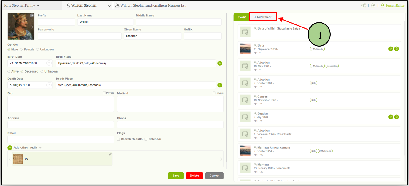 1. Users can add a personal event by clicking on the “Add event” tab in the right pane of the ‘Member editor’ page