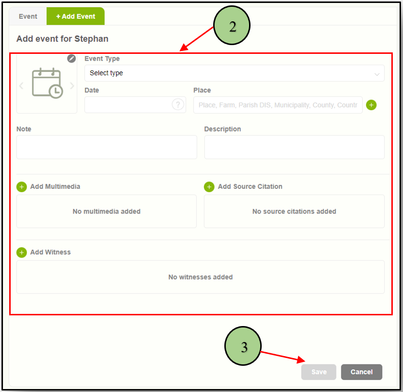 3. Add all the mandatory data and click on the “Save” button to store the event.
