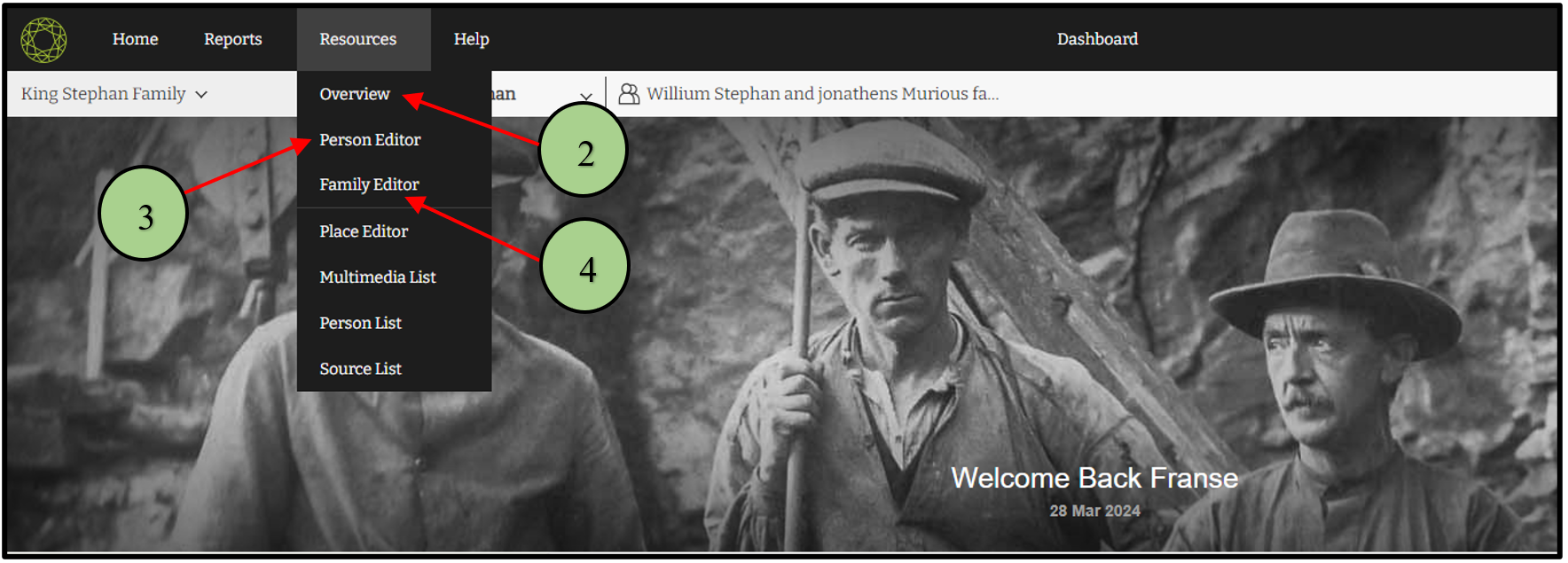 4. Family editor – Users can edit specific family details