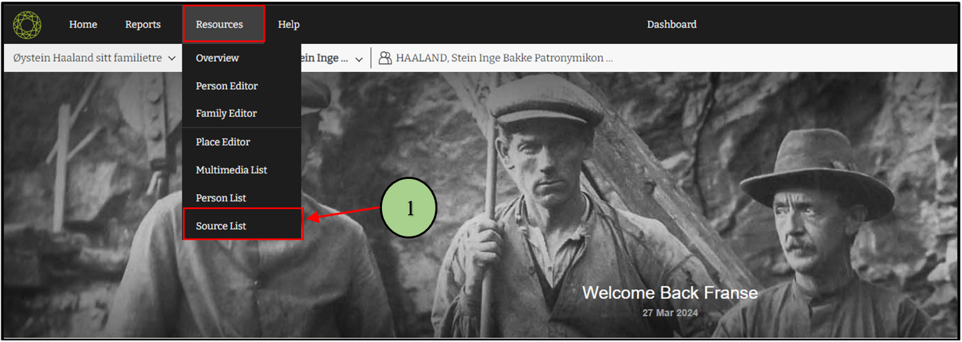 1. Users are able to navigate to the Source list by clicking on the “Source List” option in the Resource menu.