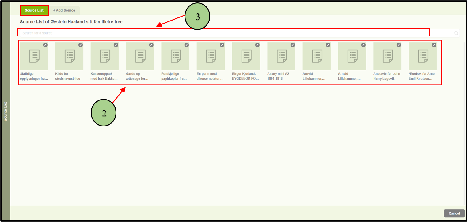 2. Then users can view all the sources connected with the family project in the “Source list” tab.