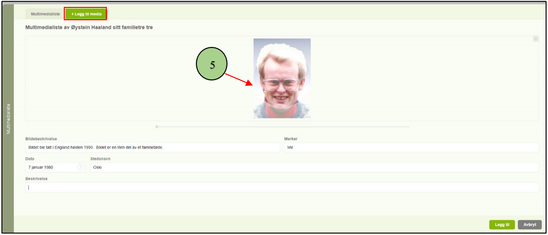 5. Ved å klikke på første alternativ for å redigere bildet vises fanen for «Legg til media» som kommer inn fra høyre bildekant. Det valgte bildet vises i panelet.