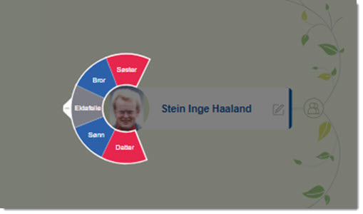 1) Legg til nye familiemedlemmer ved å klikke på pluss-knappen til venstre for personbildet i Oversiktsskjemaet.