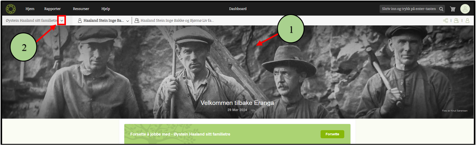 2. Velg nedtreksikonet til høyre for navnet til familietreet.