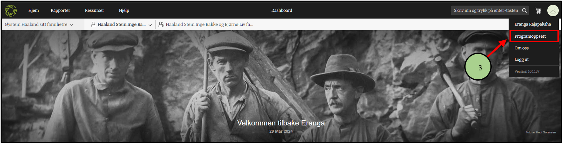 2. Klikk på bildet av deg helt oppe til høyre i slektsprogrammet. Hvis du ikke har lagt inn et bilde av deg enda vil det være et ikon med omriss som viser en person .