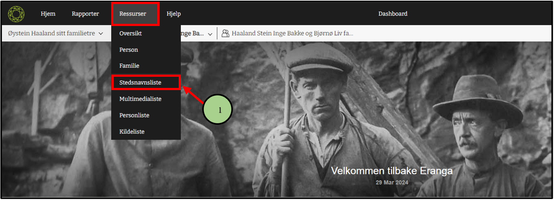 1. Velg Stedsnavnslisten fra hovedmenyen for Ressurser