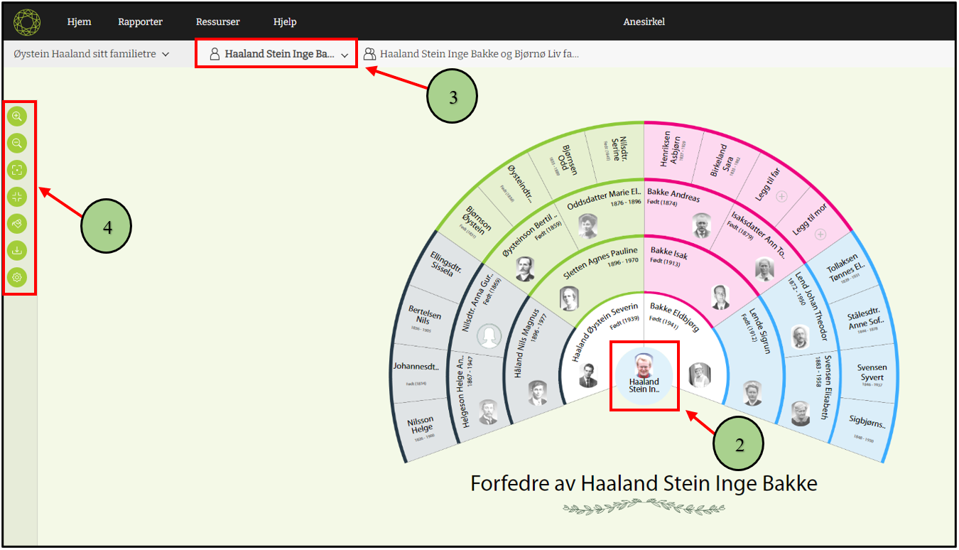 2. Ved å velge Anesirkelen fra undermenyen åpnes denne rapporten.