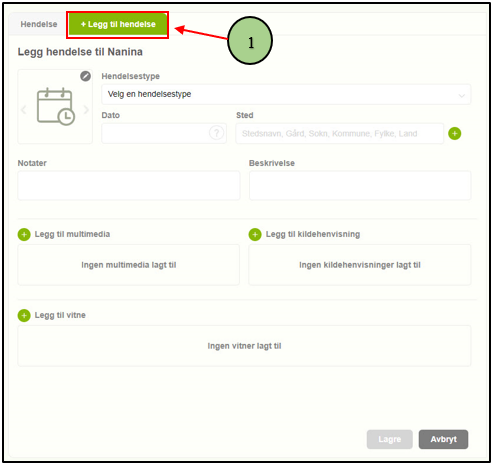 1. Det er mulig å legge til en ny personhendelse ved å klikke på knappen for +Legg til hendelse.